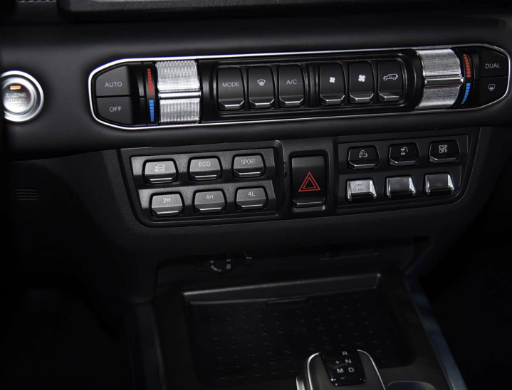 内饰方面,车内采用黑色和棕色的双色搭配,在延续硬派风格的同时优化舒适性,方向盘新增加热功能,前排座椅配备通风系统,这在同级别硬派越野车中实属少见。中控台布局简洁,配备嵌入式中控屏与机械按键,兼顾操作便捷性与可靠性,应对颠簸路况时不易出现故障。拖挂配置是亮点在于,2.5 吨拖挂资质搭配标准拖车钩方口座与电连接头,露营时可拖挂房车,户外救援也能发挥作用。此外,还配备胎压监测、倒车影像等基础配置,高配车型可选装前差速锁与360°全景影像,进一步强化实用性。
