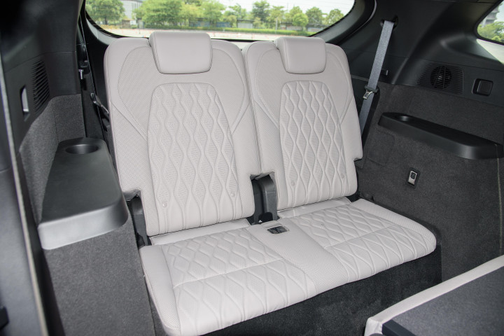 后备厢空间规整,常规容积545升,后排座椅支持4/6比例放倒,能扩展到1277升。车内分布了35处储物格,方便收纳手机、钥匙、水杯等随身物品。新车还提供7L双开门冷暖温控冰箱和二排小桌板(选装),大大提升使用便利性。