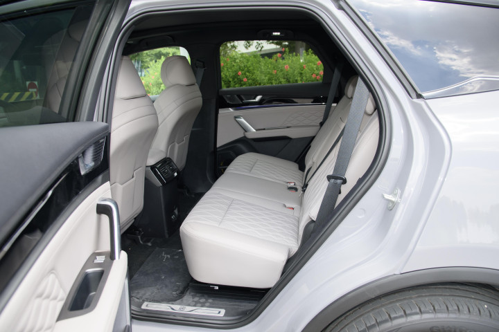 实车体验感受,身高180厘米乘员坐在后排头顶还有1拳多的空间余量,膝盖距离前排座椅靠背有2拳多的空间余量,后排地板平整,中间位置乘坐舒适性不差。